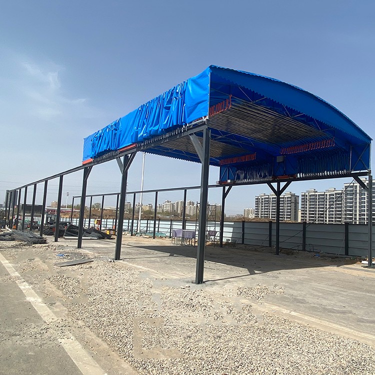 濟南兩邊鋼立柱電動伸縮雨棚 移動推拉遮雨蓬